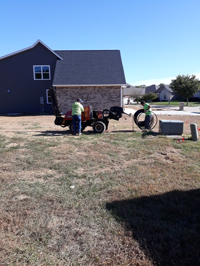 Hancock Irrigation just finished putting in an irrigation system in Cobblestone Estates. It was tricky because of the rainy/cold weather, but the guys worked tirelessly to install it. Homeowners were extremely happy since we finished the day before they moved in. Another great job by Todd, Tristan and James!